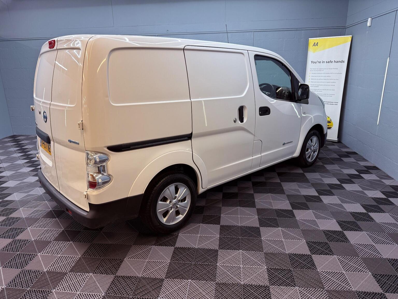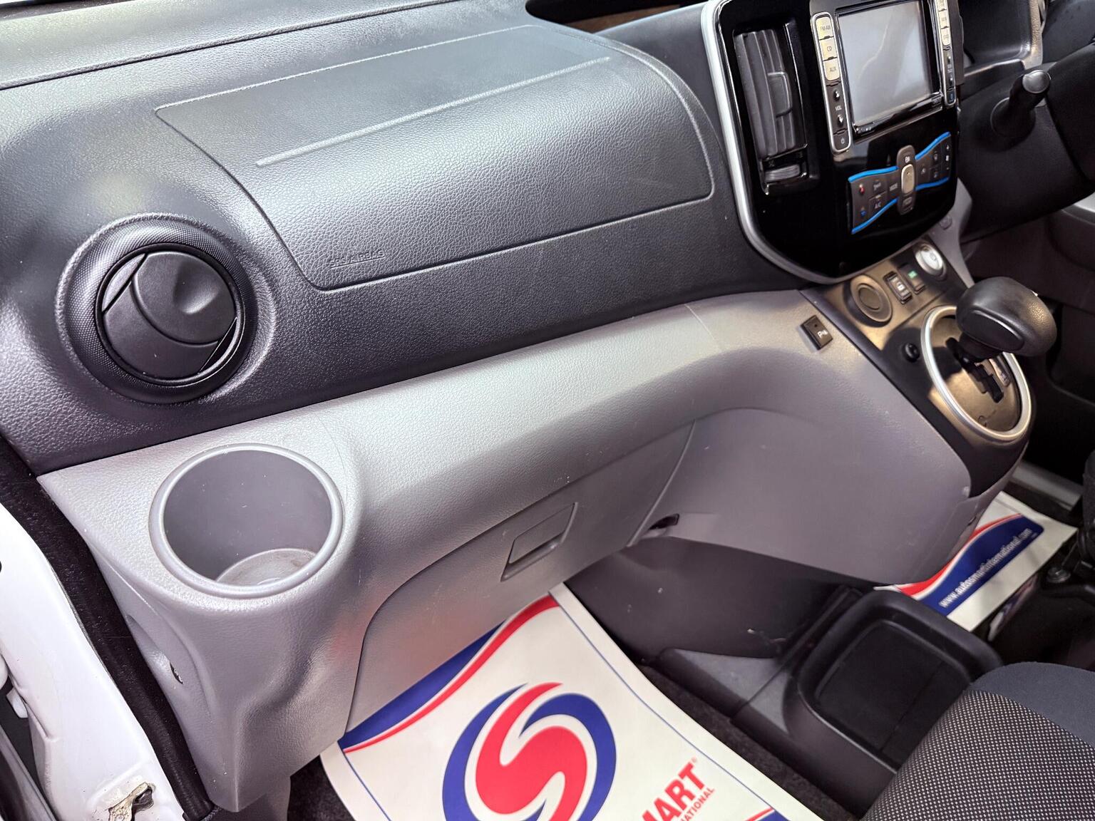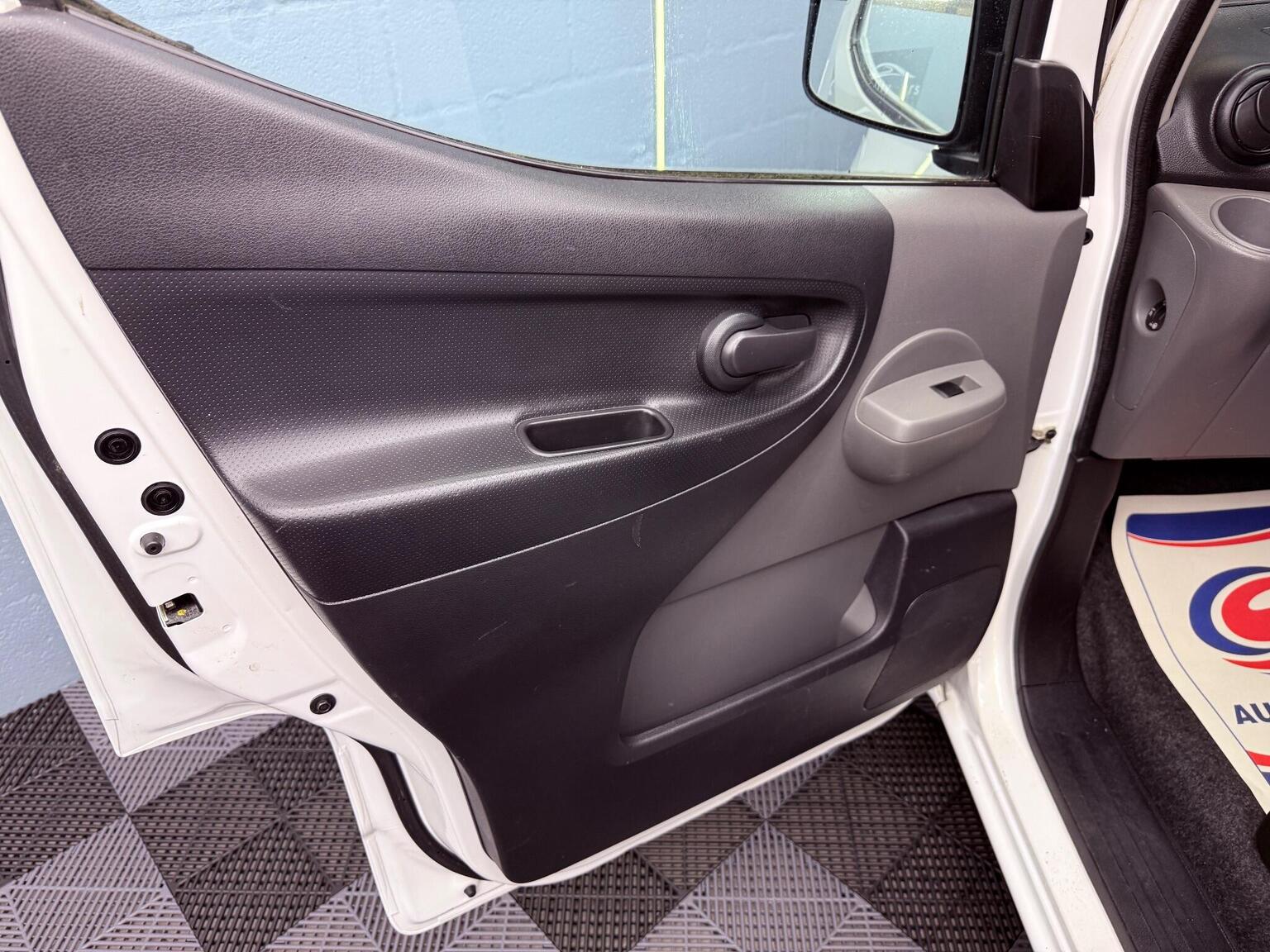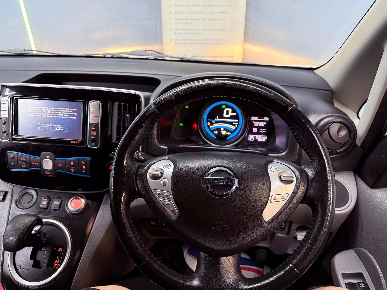 15in Alloy Wheels, 6.6kW AC On Board Charger, ABS with EBD, AM-FM-CD Audio System, AUX Socket for MP3 Player, Airbag - Driver, Auto Rain Sensing Wipers, Automatic Headlights - Dusk Sensor, Bluetooth Telephone Integration, Climate Control, Cold Pack, Cruise Control with Speed Limiter, EVSE Cable - 3 Pin - 10 Amp, Electronic Traction Control, Front Electric Windows - Drivers Side One Touch, Front Fog Lights, Full Airbag Pack, Full Metal Partition, Immobiliser, Lashing Hooks x6 on the Cargo Floor - Each with Max 200kg Vertical Load Capacity, Luggage Floor Protector, Mode 3 TYPE 2 - 32A - 7 Pin Cable, Nissan CARWINGS Telematics System and Nissan Connect Satellite Navigation, Nissan Intelligent Key, Power Assisted Steering - Electric, Rapid Charge Socket, Rear View Camera, Remote Central Locking, Safety Pack, Spare Wheel, Speakers x2, Steering Wheel - Rake Adjustment, Steering Wheel Mounted Audio Controls, Trip Computer, Twin Sliding Side Doors, USB Port, Unglazed 180 Degree Rear French Door, VDC - Vehicle Dynamic Control